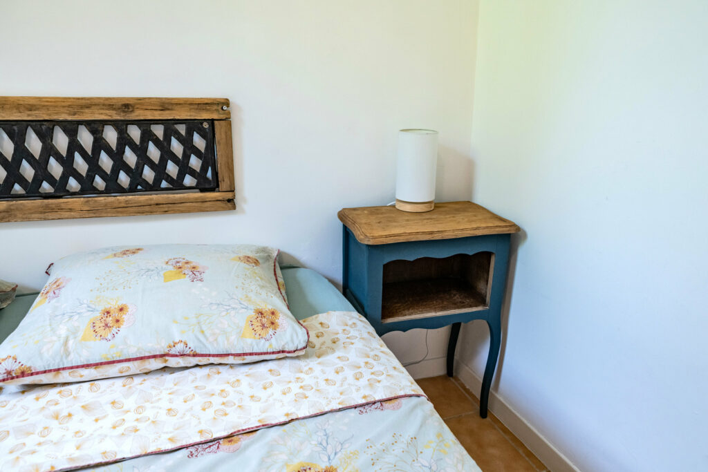 - Une chambre en mezzanine, mansardée, avec 2 lits simples pour enfants. De type cabane, cette chambre est le paradis des enfants, mais non adaptée en dessous de 3-4 ans à cause des escaliers.