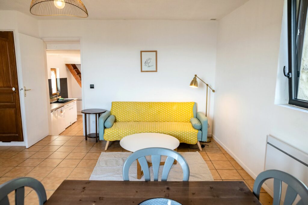 Ce gîte de 50m² + mezzanine, permet de loger 4 personnes. Il est composé de :