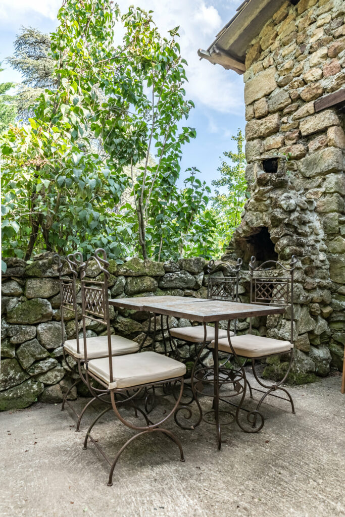 Le gîte fait partie de la maison principale mais a son accès indépendant et sa terrasse privative, avec table et chaises.